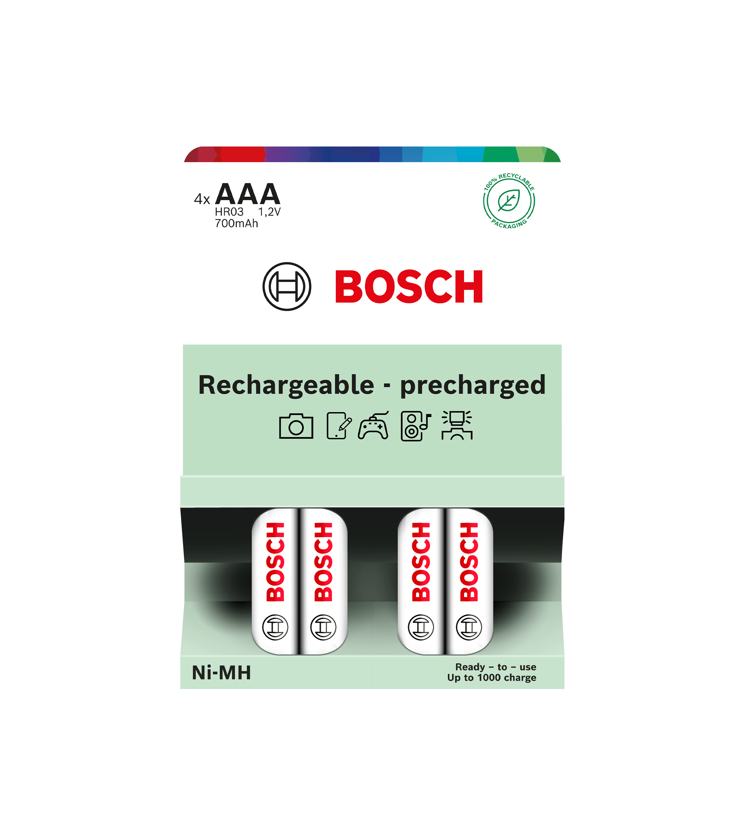 Baterie Bosch HR03B4P700/00 Rechargeable AAA 700 mAh Precharged 4 ks
