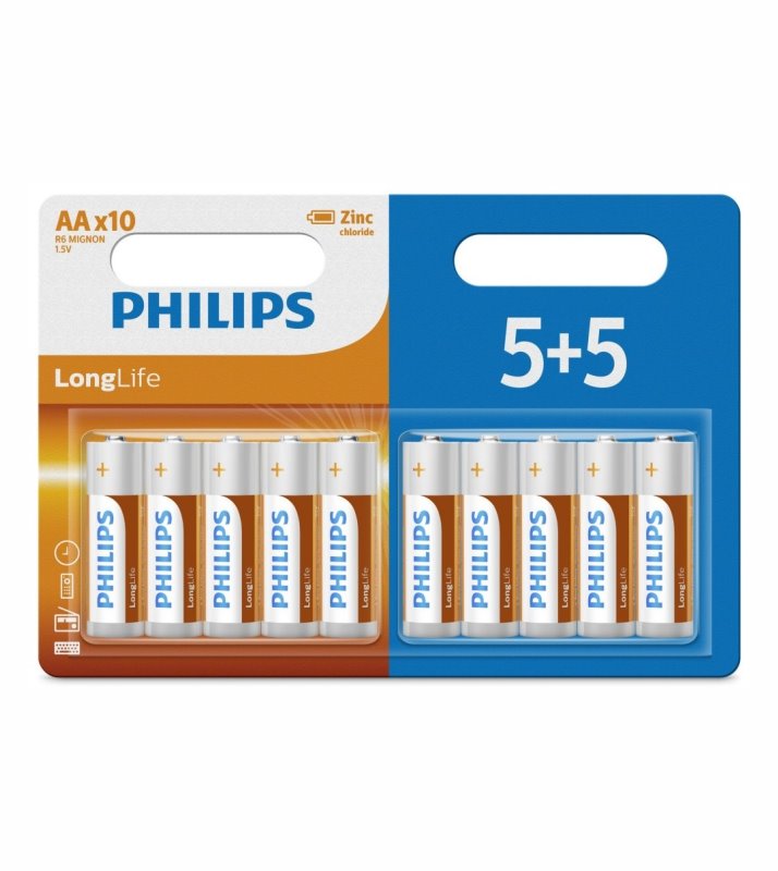 Baterie Philips R6L10BP/10 LongLife AA 5+5 ks