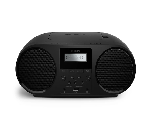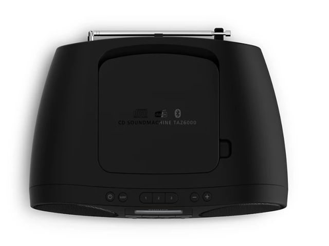 dává možnost poslouchat shora vkládaná fyzická CD, naladit si DAB+/FM rádio,